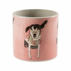 Dogs that live around Yuendumu is an original artwork by Wilma Napangardi Poulson replicated onto our EDEN Indoor Cement Planters. Ideal for both indoor and patio settings.Wilma Napangardi Poulson was born in 1970 in Yuendumu, a remote Aboriginal community 290 km from Alice Springs. She has a sister, Ivy napangardi Poulson, an artist also working with Warlukurlangu Artists, and a brother who alternates between Darwin and Nyirripi. Wilma went to the local school in Yuendumu, then to Yiarra College in Alice Springs. When she finished schooling she returned to Yuendumu. Wilma has been painting with Warlukurlangu Artists since 2004. She paints several dreamings, but the ones that feature constantly are the Bush Banana Dreaming depicting Vaughan Springs country and the Snake Vine Dreaming relating to the Mt. Theo area. These Dreamings were passed down by her father and his father’s father for millenia.