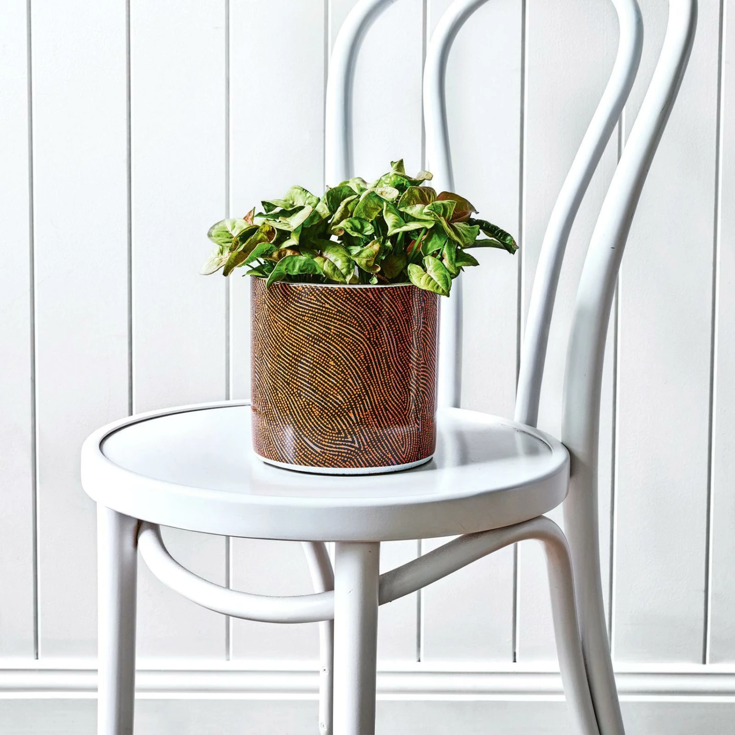 Fire Dreaming is an original artwork by Nathania Granites replicated onto our EDEN Indoor Cement Planters. Ideal for both indoor and patio settings, Our planters not only tell a story about the Indigenous artists connection to their country but also make a unique addition to any home.