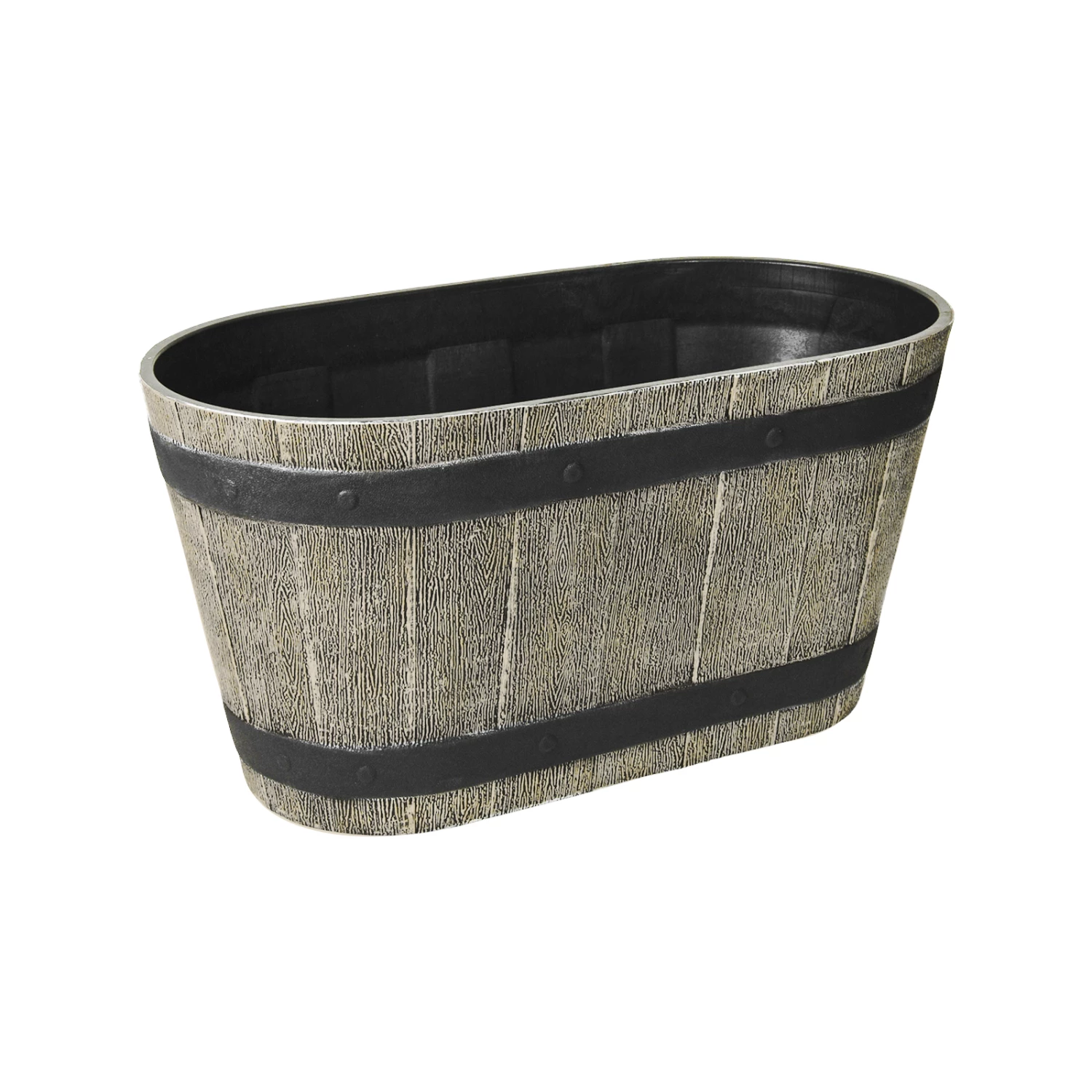 EDEN Whiskey Trough Planters are made from recycled resin materials which creates the product to be sturdy but lightweight. It is perfect for indoor and outdoor use.This product is more durable than wood and not prone to rot as well as being the best choice if you wish to use a wine barrel planter as a water garden or feature.