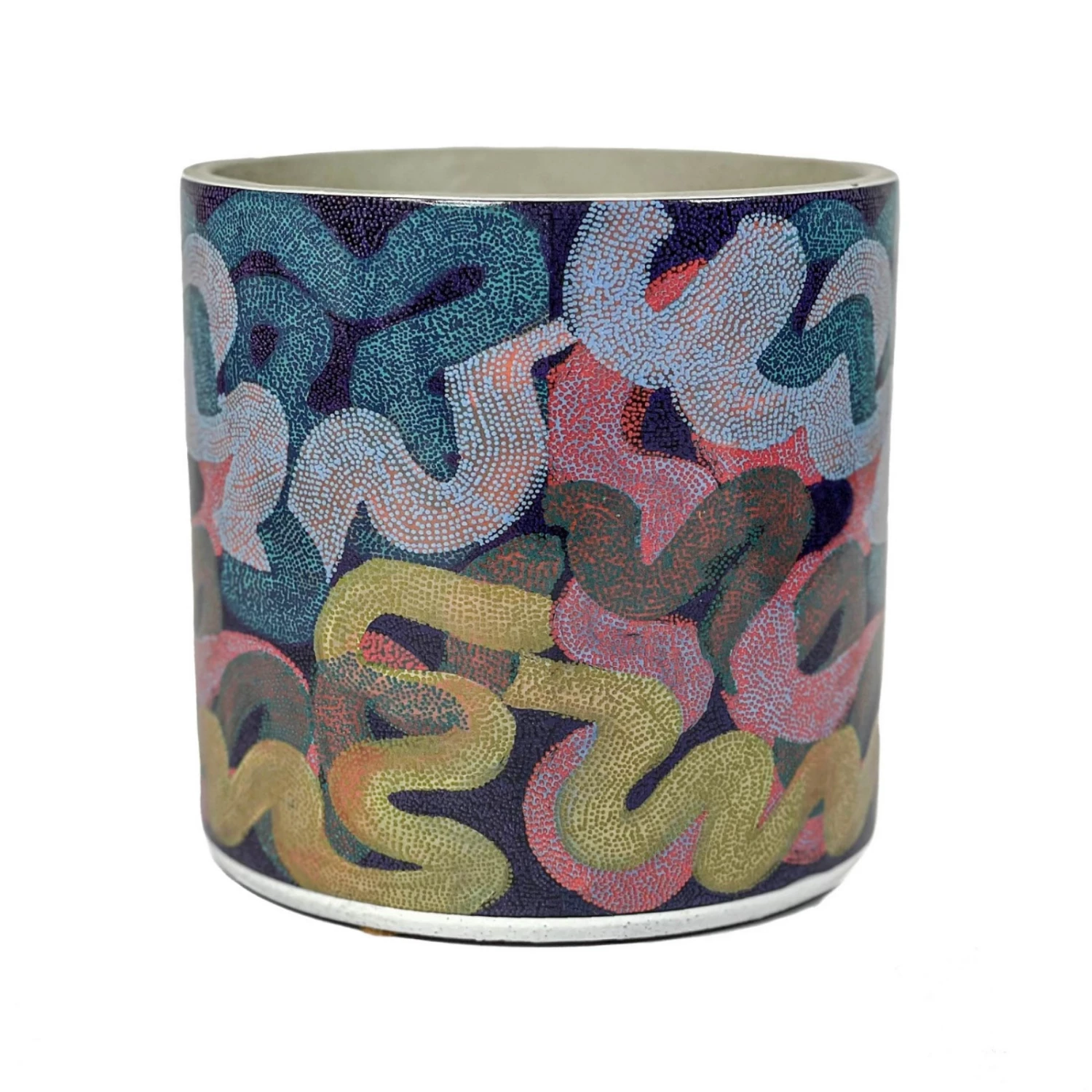 Fire Dreaming 2 is an original artwork by Vanetta Nampijinpa Hudson replicated onto our EDEN Indoor Cement Planters. Ideal for both indoor and patio settings, Our planters not only tell a story about the Indigenous artists connection to their country but also make a unique addition to any home.